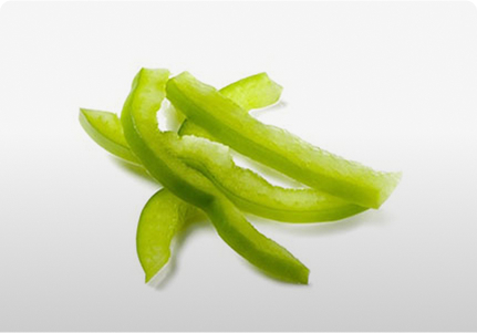 A row of fresh, thinly sliced green peppers lining the bottom bun.