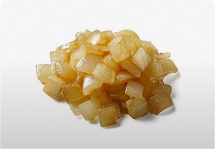 Hand-chopped white onions, and evenly placed on the top bun.